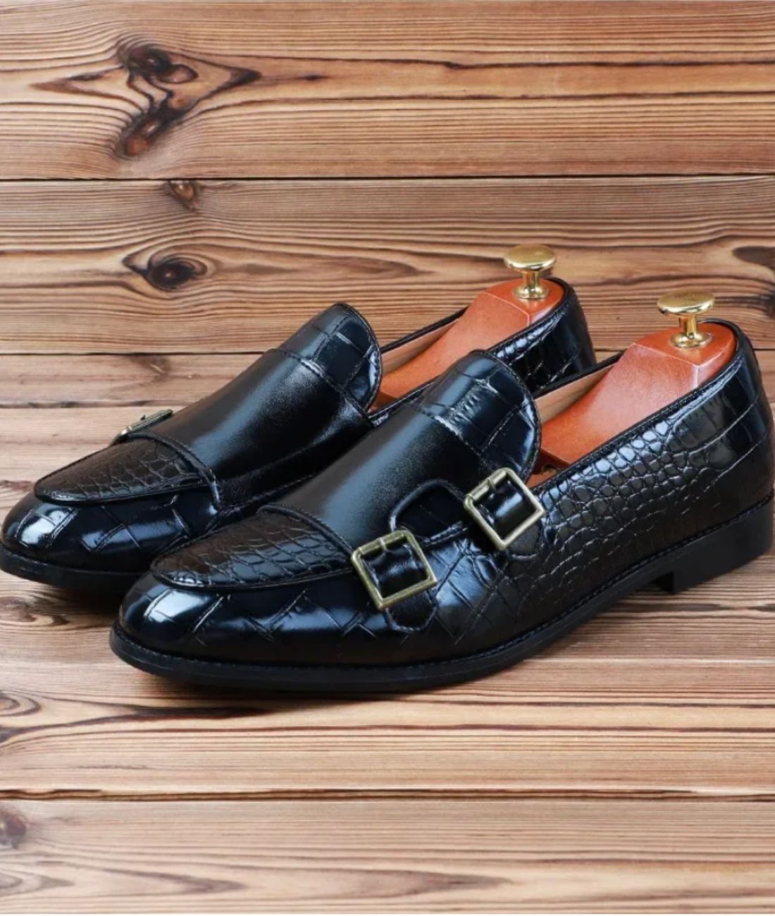 Une paire de mocassins en cuir à imprimé crocodile pour hommes, alliant confort, style et qualité.