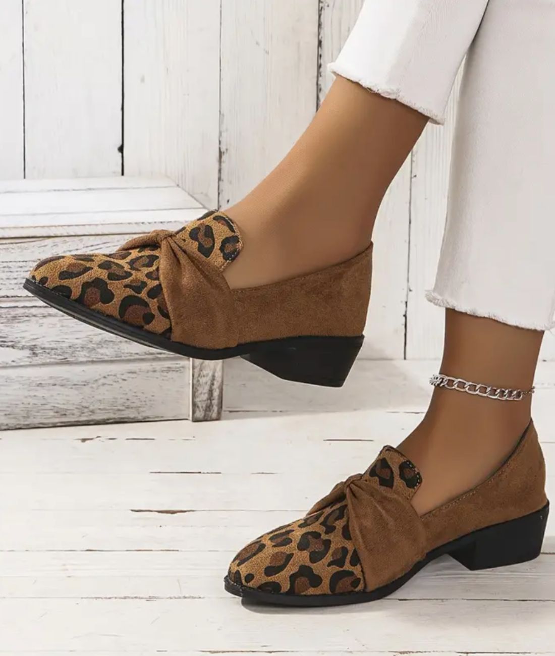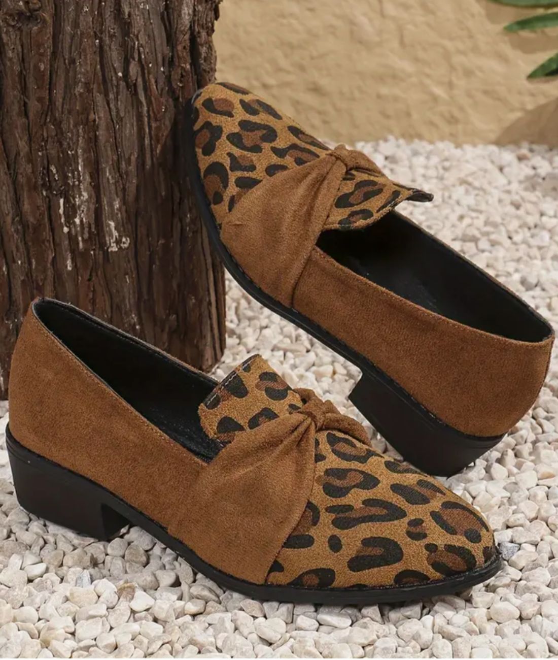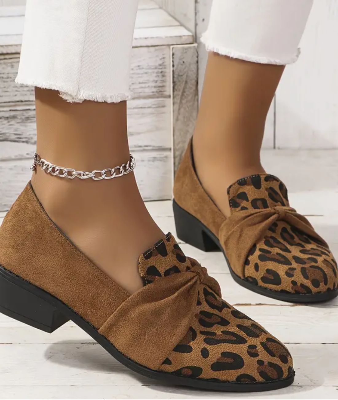 Offre-toi une allure sophistiquée avec ces mocassins à talons carrés en cuir synthétique, parfaits pour sublimer ta féminité. Leur design élégant et le noeud tressé sur l'avant ajoutent une touche de glamour à ton style. Que ce soit pour une soirée chic en bord de mer ou une sortie décontractée entre amis, ces mocassins au motif léopard intemporel seront ton allié mode incontournable.