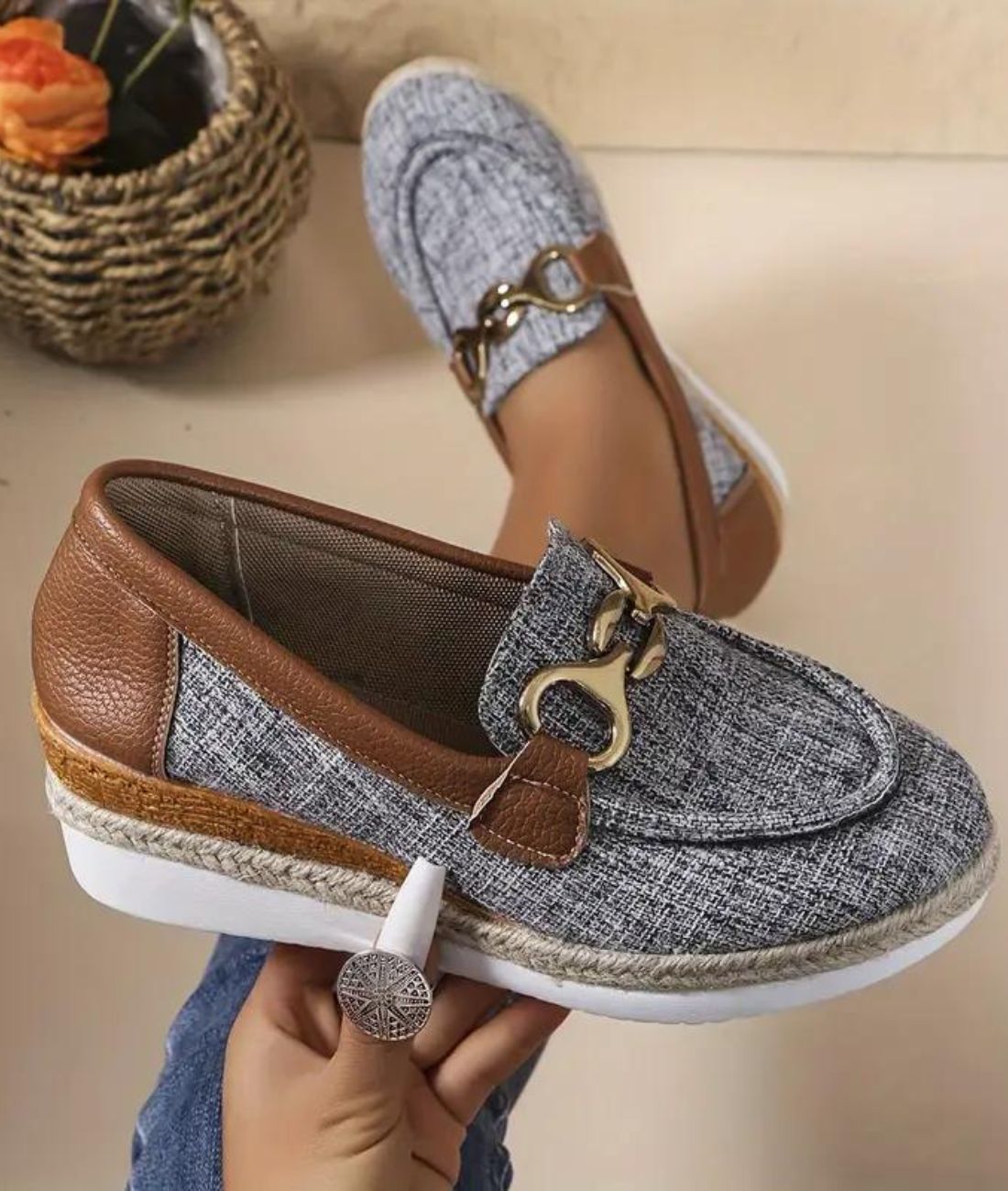 Avec ces mocassins en jean à plateforme, tu seras prête à affronter la journée avec élégance et confort. Parfaits pour tes sorties en ville ou pour flâner en vacances, ces chaussures apporteront une touche de style à chacune de tes tenues. Laisse-toi séduire par ce modèle unique et ajoute une note tendance à ta collection de chaussures ! 🌺