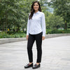 Tu recevras une paire de mocassins noirs à semelles compensées pour femme, confectionnée avec soin et attention aux détails pour sublimer ton style en toute occasion.
