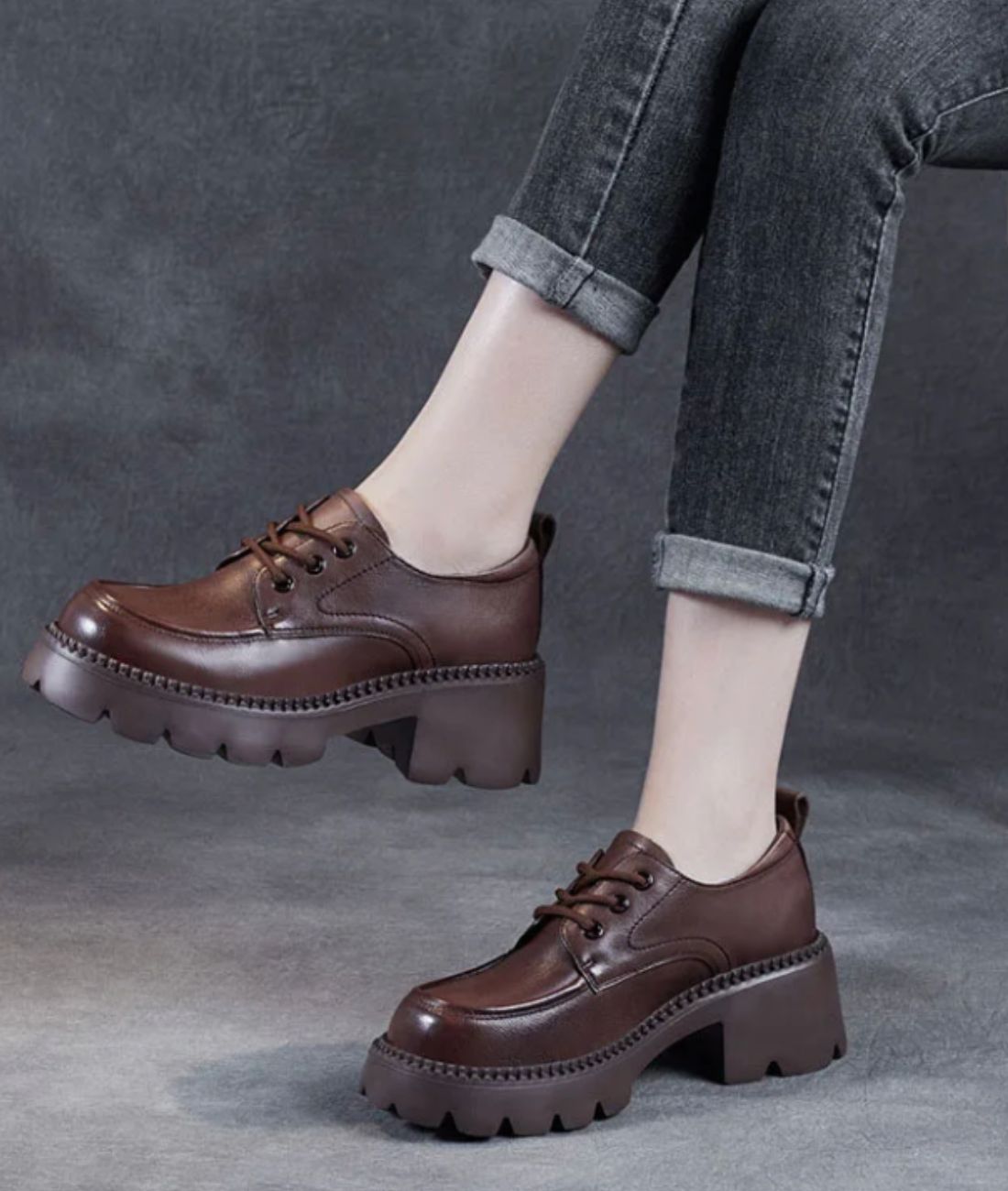 Offre-toi une touche de caractère et d'élégance avec ces mocassins marrons à plateforme au style britannique. Leur semelle crantée antidérapante de 5 cm te garantit à la fois confort et allure, tandis que les lacets ajoutent une touche urbaine et vintage à ton look.