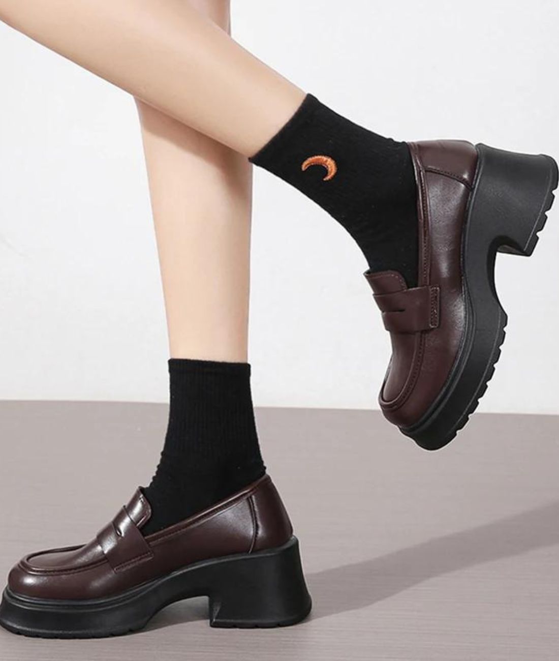 Ta commande comprend une paire de mocassins de style britannique à plateforme pour femmes, soigneusement emballée pour une réception parfaite.